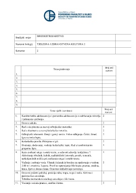Nastavni kolegij TJELESNA I ZDRAVSTVENA KULTURA 2