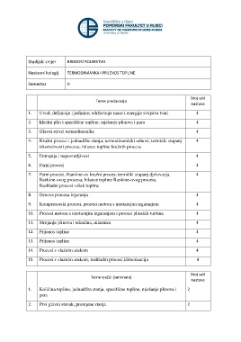 Nastavni kolegij TERMODINAMIKA I PRIJENOS TOPLINE