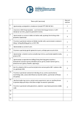 Priprema i upućivanje gorača generatora pare, puštanje pare na potrošače. 2