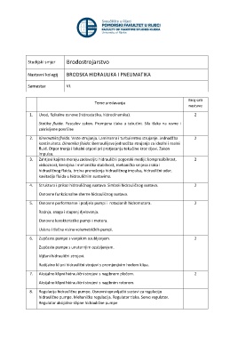 Nastavni kolegij BRODSKA HIDRAULIKA I PNEUMATIKA