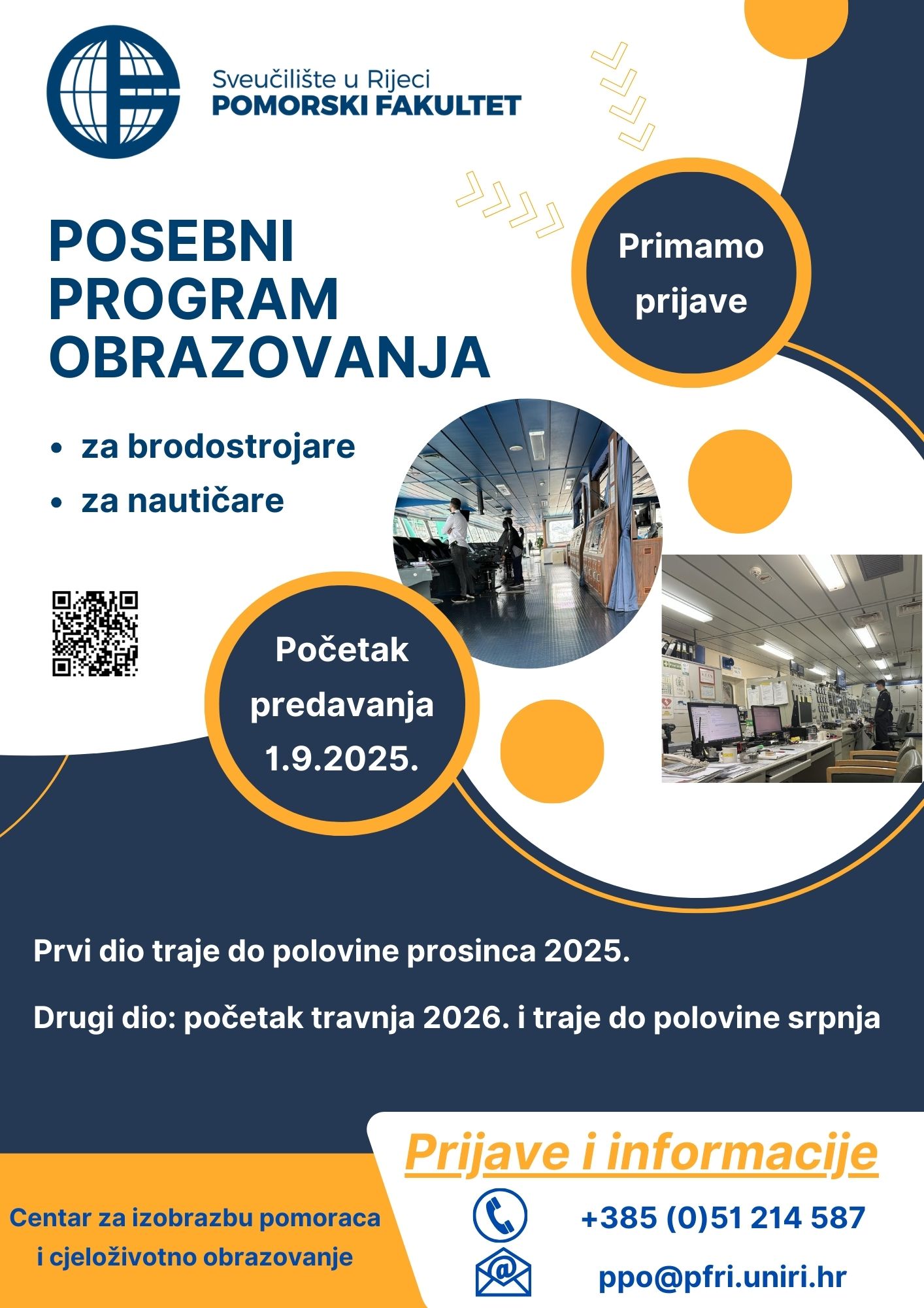 Pozivamo vas na prijavu za novi ciklus Posebnog programa obrazovanja, za nautičare i za brodostrojare. Planirano je da predavanja počnu u ponedjeljak, 1. rujna 2025.