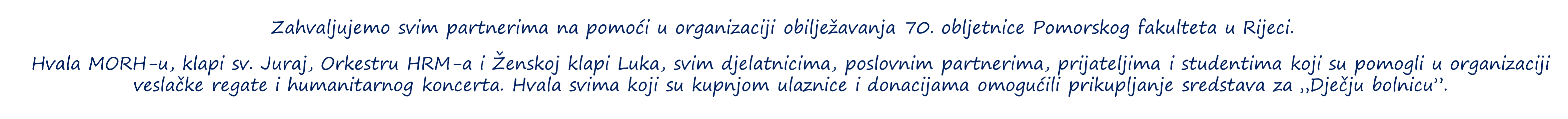 Uz slogan Znanjem plovimo svijetom želja nam je zahvaliti se svima koji su na bilo koji način pridonijeli ili još uvijek pridonose višedesetljetnoj tradiciji visokoga obrazovanja ove ustanove.