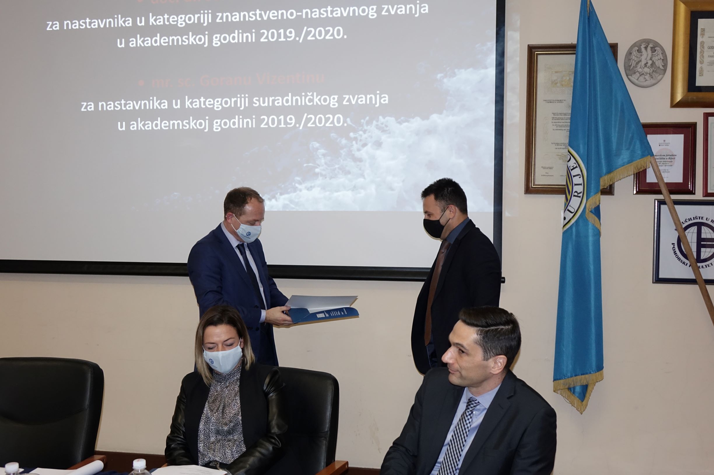 Temeljem novog Pravilnik o nagrađivanju izvrsnosti nastavnika i suradnika s kriterijima za nagrađivanje iskusnih i mladih znanstvenika, a potvrđeno brojevima, prvi su put dodijeljene nagrade za izvrsnost u znanstveno-istraživačkom radu. U kategoriji nastavnika primio ju je doc. dr. sc. Lovro Maglić, a u kategoriji suradničkog zvanja mr. sc. Goran Vizentin.