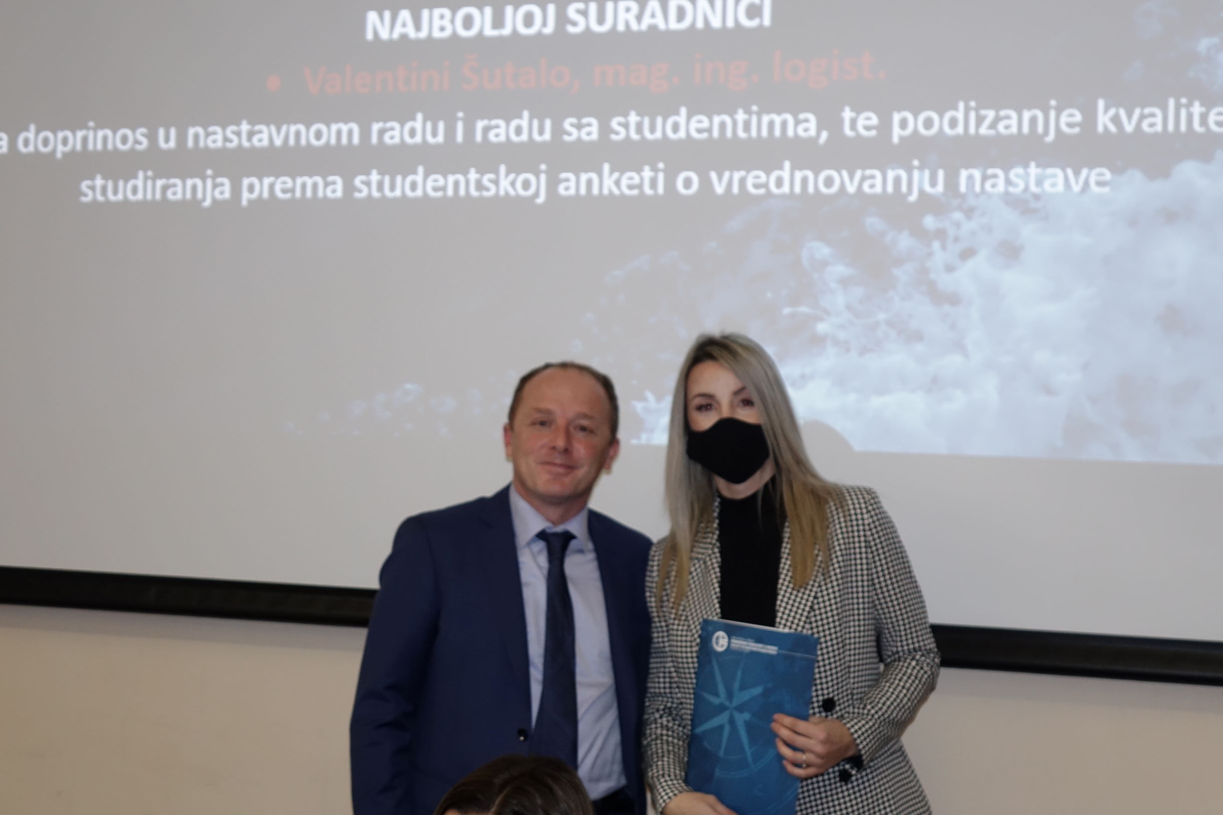 Najbolja suradnica Valentina Šutalo, mag. ing. logist., (doprinos u nastavnom radu i radu sa studentima, te podizanje kvalitete studiranja prema studentskoj anketi o vrednovanju nastave za akademsku godinu 2019./2020.)