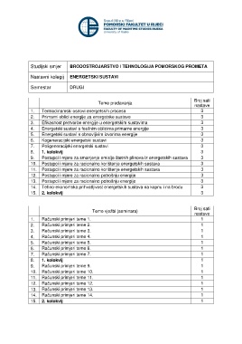 Nastavni kolegij ENERGETSKI SUSTAVI