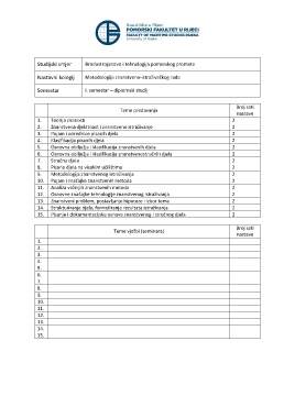 Nastavni kolegij Metodologija znanstveno-istraživačkog rada