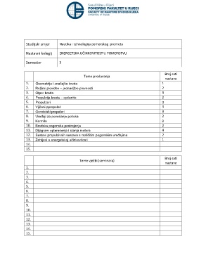 Nastavni kolegij ENERGETSKA UČINKOVITOST U POMORSTVU