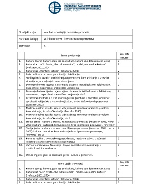 Nastavni kolegij Multikulturalnost i komuniciranje u pomorstvu