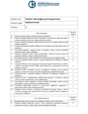 Nastavni kolegij Stabilnost broda