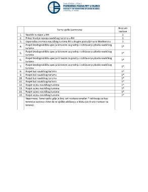 Napomena: Teme vježbi gdje je broj sati nastave označen * održavaju se kao