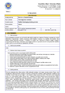 funkcioniranja lučkih terminala. Izučavanjem ovog kolegija studenti će se upoznati s osnovnim lučko-pomorskim objektima i
