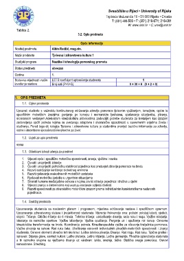 izvođenja nastave Broj sati (P+V+S) 0 + 30 + 0 (0 + 2 + 0)