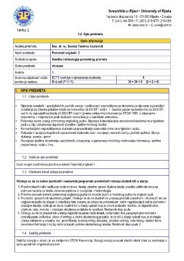 • Komunikacijsko osposobljavanje studenta za prezentiranje pomorskih tema na engleskom jeziku.