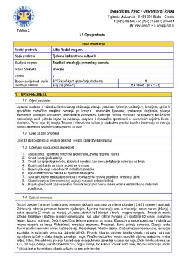 studiranja. Pored toga cilj kolegija Tjelesna i zdravstvena kultura je studentima prenijeti bazične informacije za zdravlje,