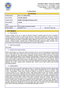 vrstama naprezanja i deformacija.Usvajanje teorijskih znanja koja su temelj za rješavanje problema iz područja kinematike i