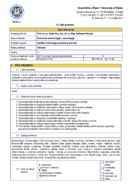 Naziv predmeta Pomorska meteorologija i oceanologija