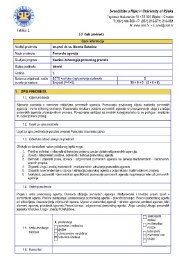 pomorskih agenata u transportnom procesu. Povezivanje sadržaja sa srodnim kolegijima kako bi se postigao i realizirao