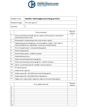 9. Poslovi posredovanja pomorskog agenta – praktični postupci. 2