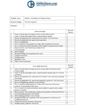 8. Measurements: ship's dimensions, displacement, grammar: Achievement Test 1 2