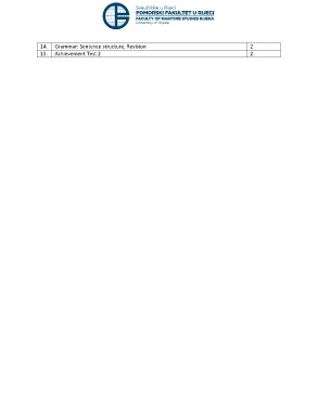 14. Grammar: Sentence structure, Revision 2 15. Achievement Test 2 2