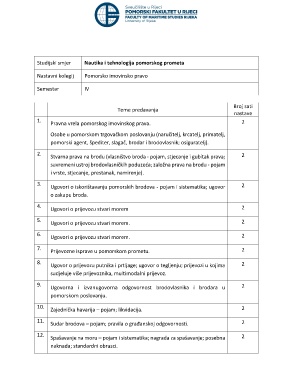Studijski smjer Nautika i tehnologija pomorskog prometa