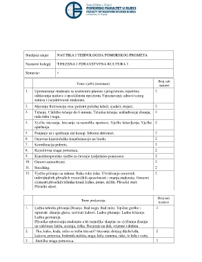 Nastavni kolegij TJELESNA I ZDRAVSTVENA KULTURA 1