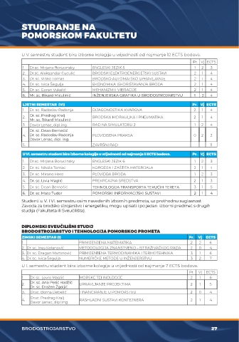 U VI. semestru student bira izborne kolegije u vrijednosti od najmanje 5 ECTS bodova. Pr. Vj ECTS