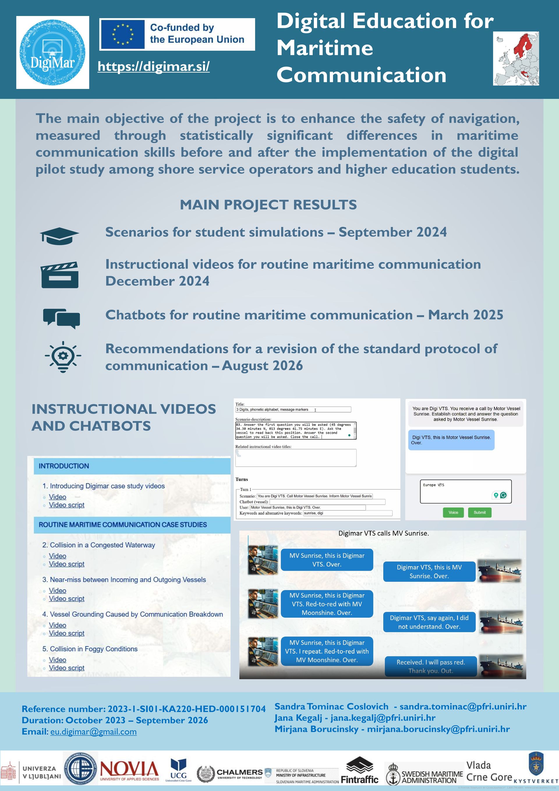 Projektom se nastoji unaprijediti digitalne obrazovne sadržaje te time potencijalno pridonijeti smanjenju ljudskih, okolišnih, društvenih i gospodarskih gubitaka koji proizlaze iz pomorskih nesreća.