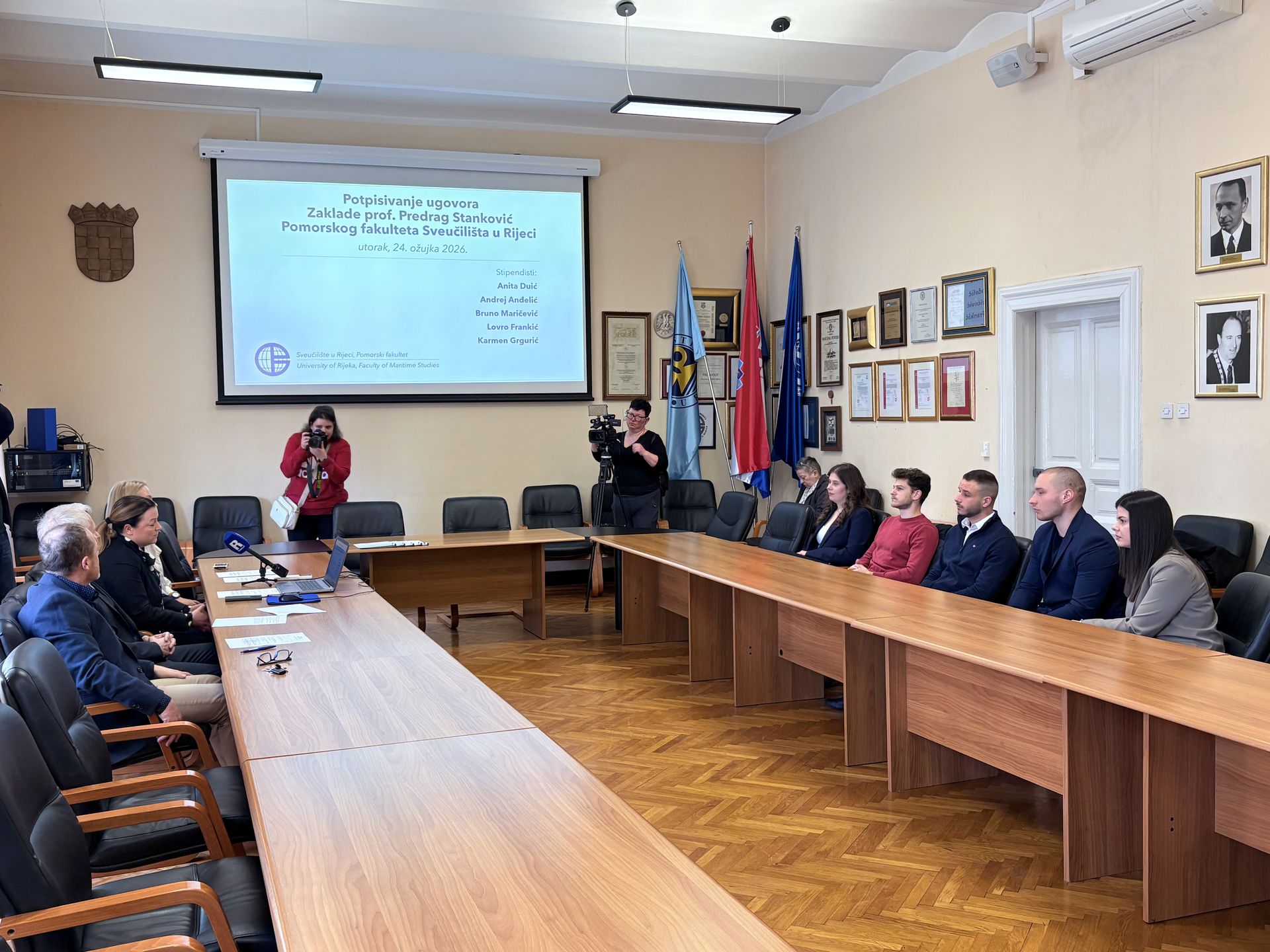 U utorak, 24. ožujka, na Pomorskom fakultetu u Rijeci pet je studenata potpisalo ugovore o stipendiranju, čime im je osigurana financijska potpora od tisuću eura. Stipendije dodjeljuje Zaklada „Profesor Predrag Stanković“ s ciljem poticanja izvrsnosti i pružanja podrške u njihovom daljnjem studentskom djelovanju.
